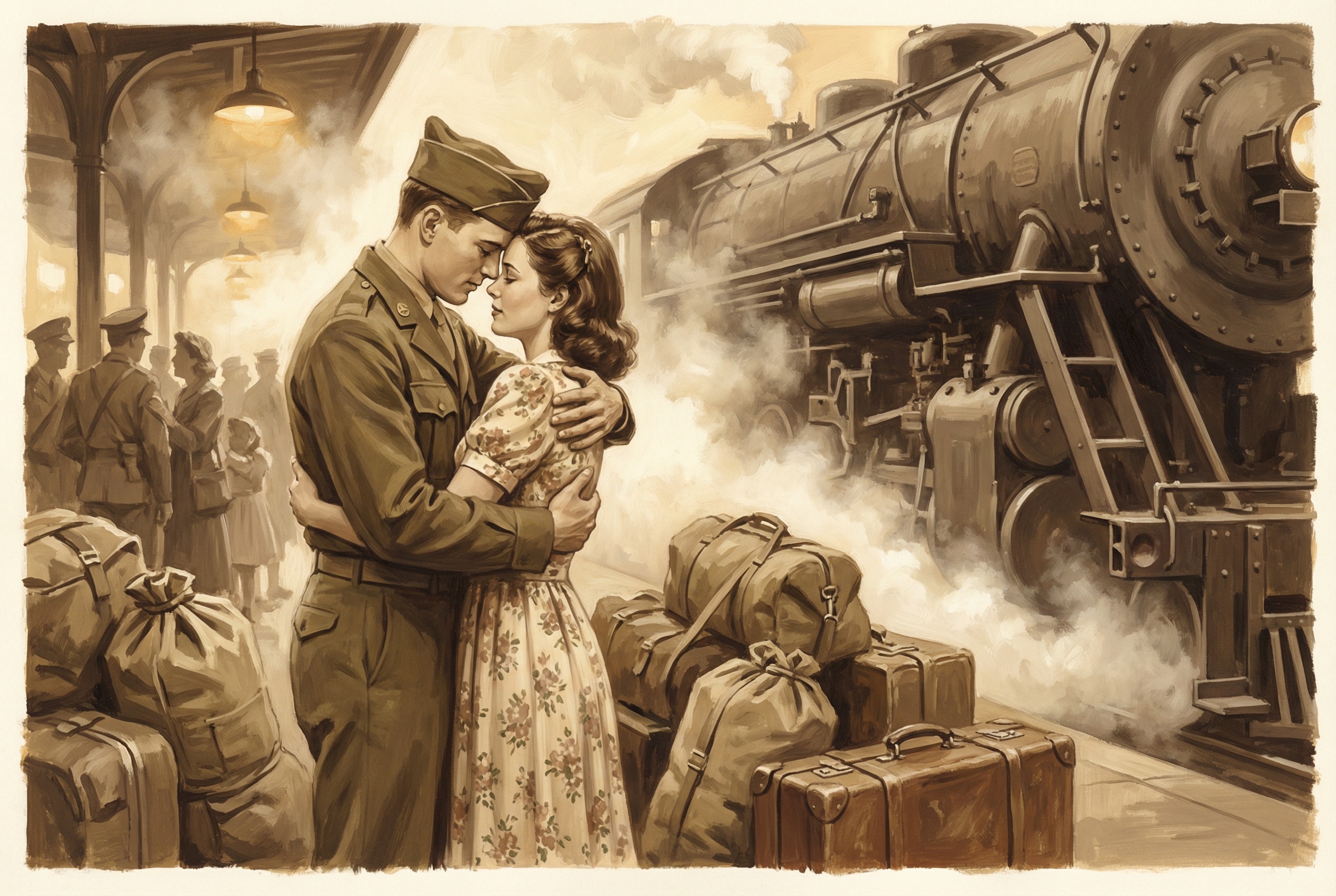 Twelve postcards. Two newlyweds. One war. Follow their story — one card at a time, delivered to your mailbox every week.